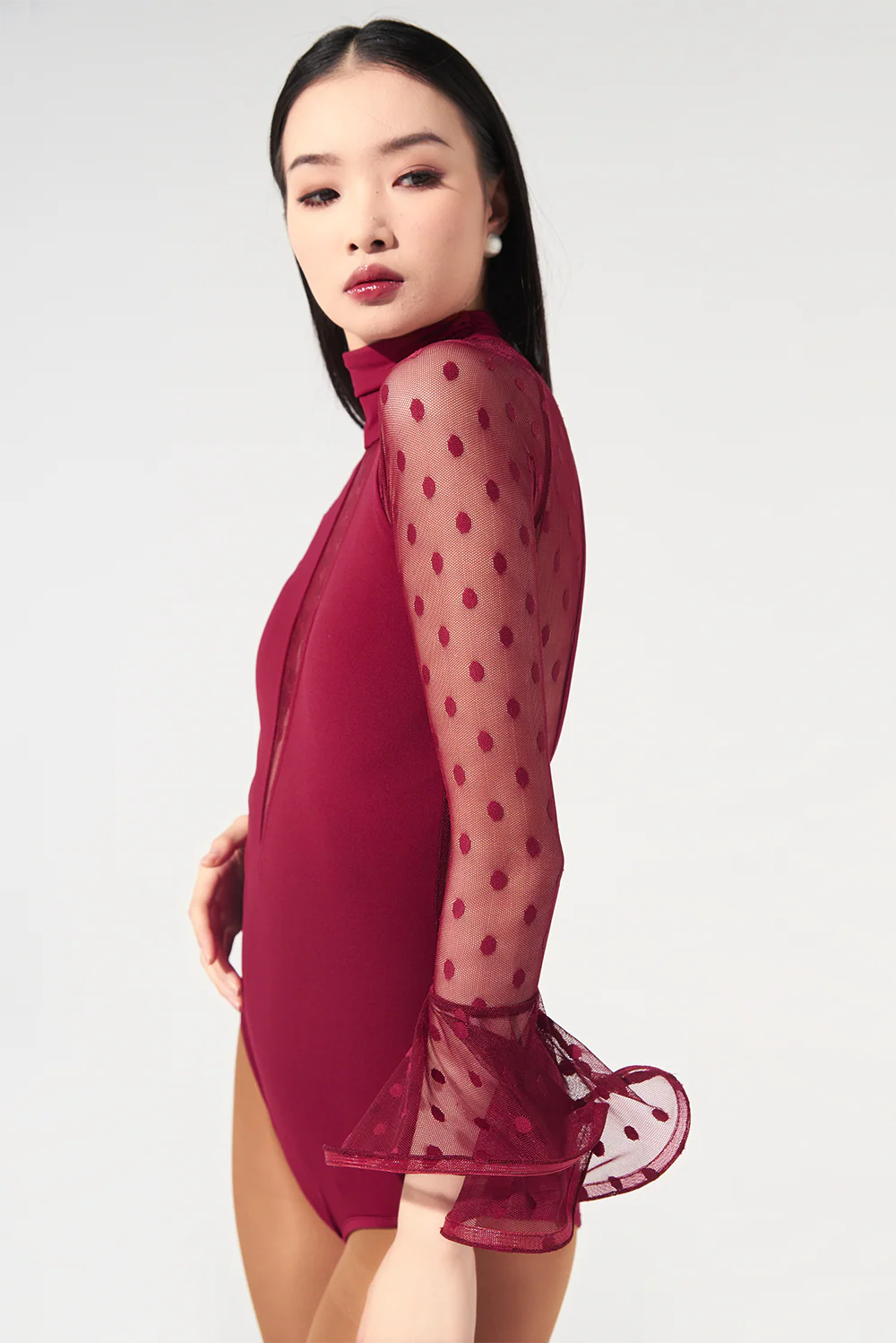 DANCE QUEEN 567-2 High neck Long Sleeve Polka dot leotard