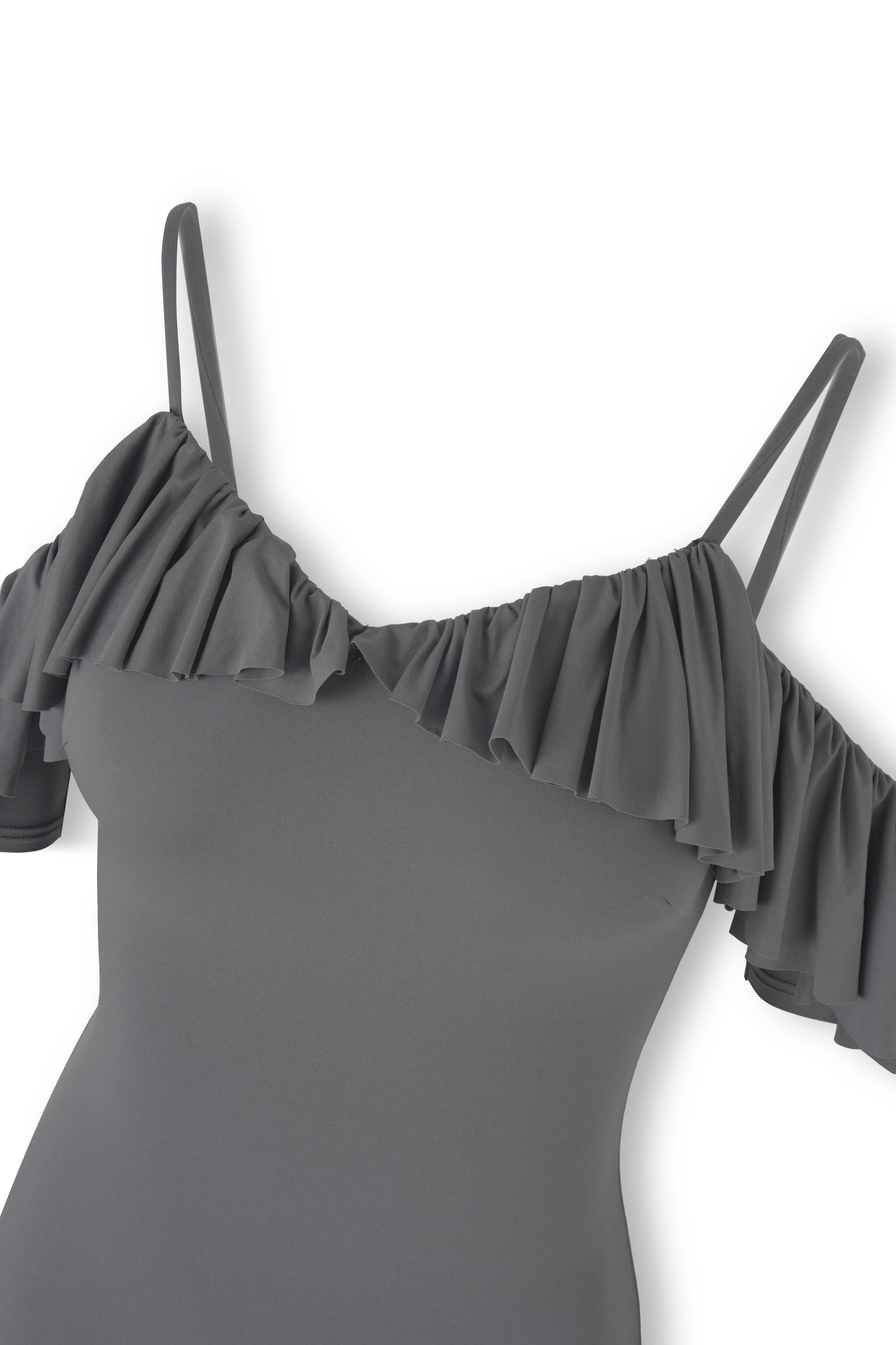 DANCE QUEEN 702-11 Gray Suspender Ruffle Dancing Ballroom Leotard