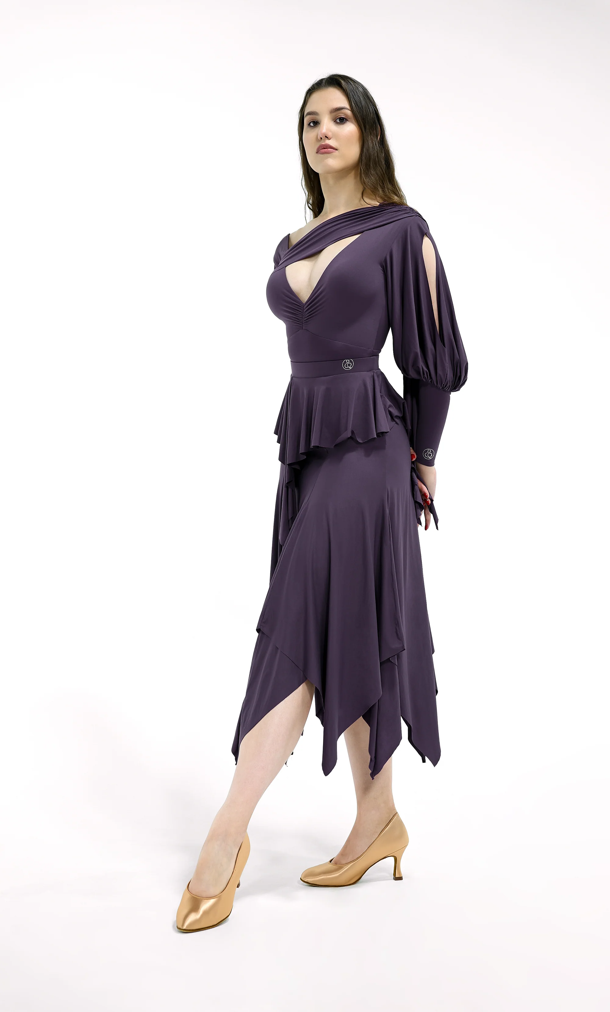 DANCE QUEEN 820-3 Autumn Midnight Orchid Ruffle Elastic Ballroom Dance Skirt